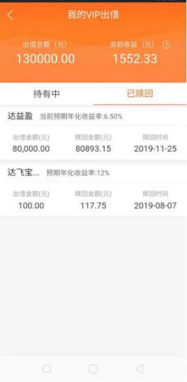 然而,除了还未到期的1万元出借金额,吴翠剩下已经到期的20万元投资本金及收益全部无法赎回——“浓情9月90天产品12万已经到期,无法提现到余额账户;另外8万元是2019年11月3日到期,11月25号才到的账户余额,如今余额显示到账,出借协议也没有了,但是钱依然被扣在达飞云贷的账户余额里面,提现到银行卡也根本提不出来。”