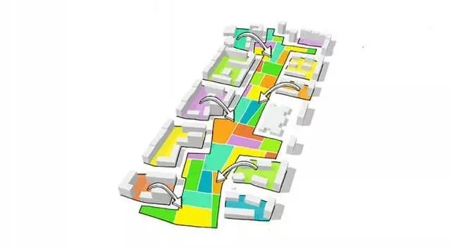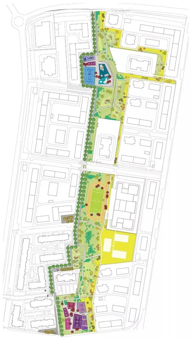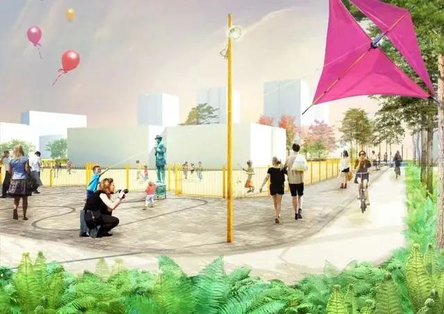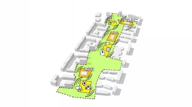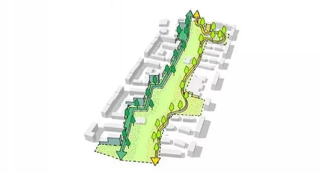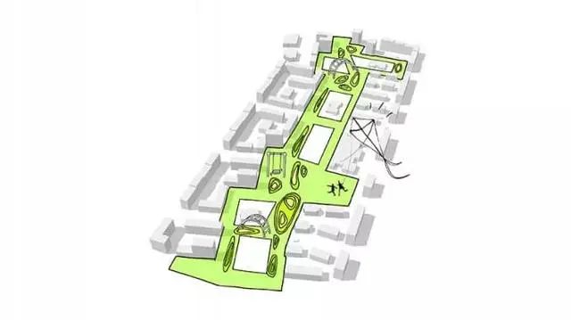 主干道功能确定,接下来则是将功能区域引进来,要想激活公园活力,就必须把日常需要的活动空间和活动设施等,引进到公园里。