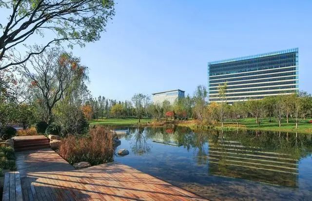 园区设置了多个功能丰富的共享空间,以樱花湖为中心的科普植物园占地约3万平方米,通过自然的乔木、地被、水生植物共同打造以科普教育为核心的生境之旅。