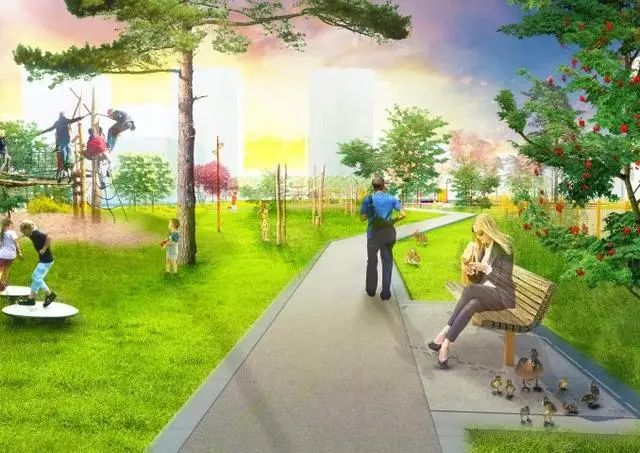 儿童天生有着爱跑爱动的特性,我们将儿童活动空间设计成一个动态的活动空间,贯穿于整个公园中。