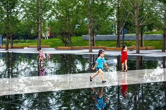 中央公园的水镜广场从试运行期间,就受到了大家的喜爱。