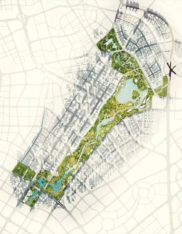 然后将自然引进中央城市空间,让这里拥有广泛的绿色公共区域。