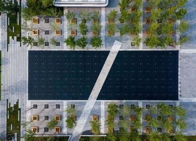 大型反射水池,将池水的收集和铺装一体化设计