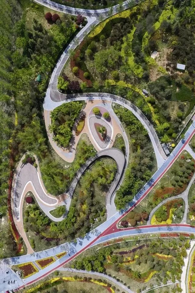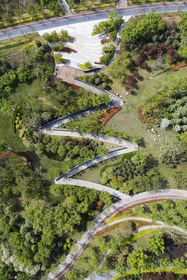 设计之初,设计师针对竖向、河道、交通系统和地下空间的规划,进一步结合人的行走体验设计地形空间与沟通逻辑,创造出“移步换景”的园林空间体验。造园的过程要求在“相地”的基础之上做适当的竖向设计,形成了复合、立体的绿道系统。