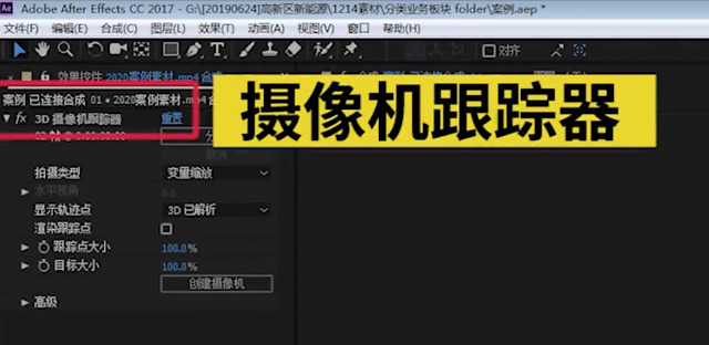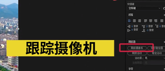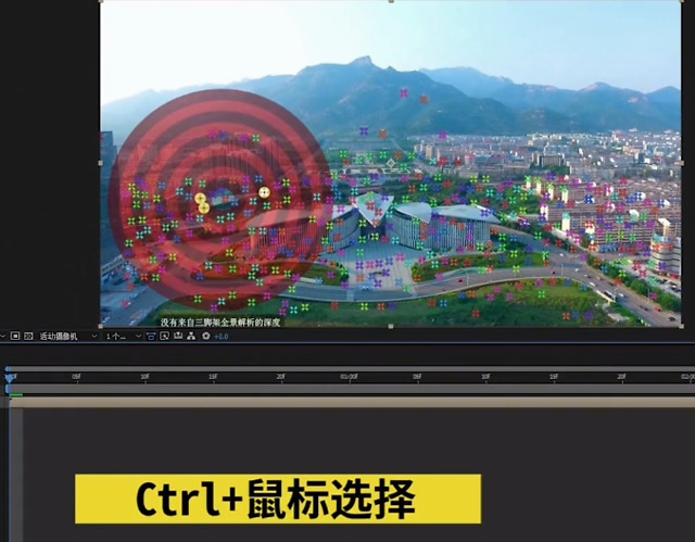 如果没有看到跟踪点的话,可以选择时间轴上的素材,在效果面板选中3D摄像机跟踪器,这时画面就会出现跟踪点。