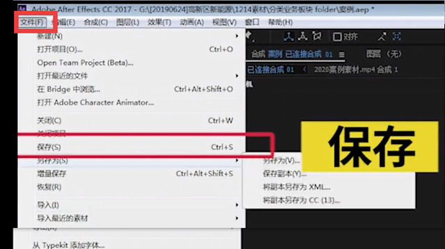 这时会默认打开AE的页面,进入AE后,在另存为输入工程名称。