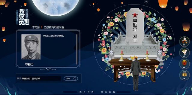 不过局限也很明显,中华英烈网只适合对英烈的网上公祭等功能,还不支持普通人对自己亲人设立纪念堂。我们可以在英烈馆里对烈士进行献花、祭拜、敬酒和上香四种操作。
