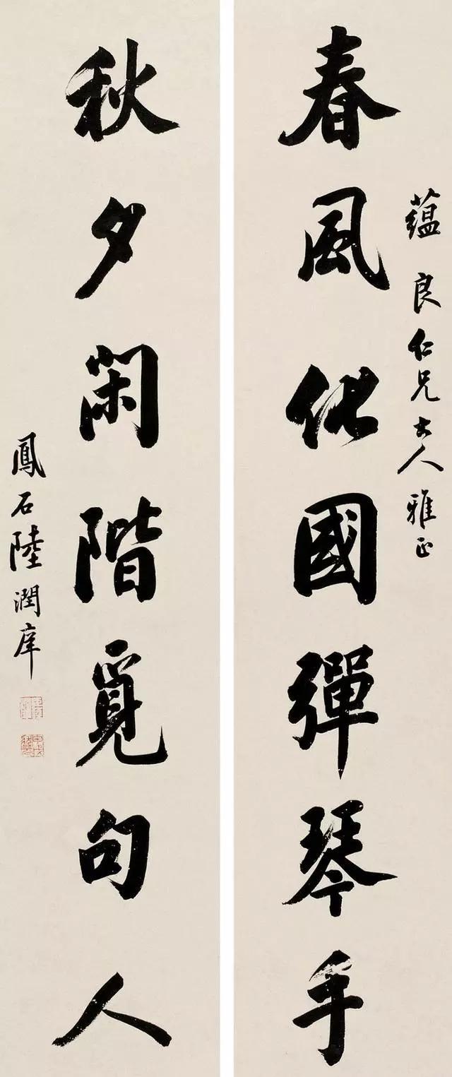 陆润庠眼界甚高,一般文人皆不入法眼,但他对扬州八怪却是佩服得五体投地,尤其是对郑板桥,他常书郑板桥现成的联对,如"室雅何须大,花香不在多",这原是郑板桥在镇江金山读书处题写的对联,陆常复书。