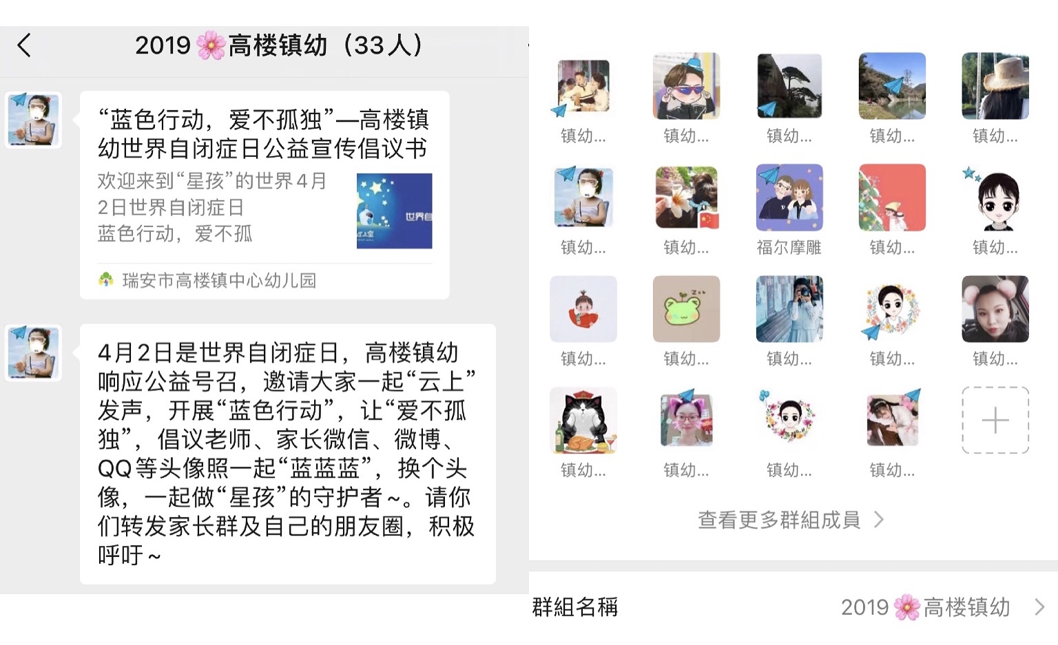 在第13个世界自闭症日来临之际,高楼镇中心幼儿园邀请全园教师一起“云上”发声,开展“蓝色行动”,呼吁全园幼儿绘画“自闭症日宣传画”。引导孩子们体验相互融合,学会接纳和尊重;倡议老师、家长微信、微博、QQ等头像照一起“蓝蓝蓝”,做“星孩”的共同守护者;推出关于自闭症儿童家庭干预策略指导特辑,促使家长掌握更专业的家庭干预知识和技能,更好地开展自闭症儿童家庭干预工作。