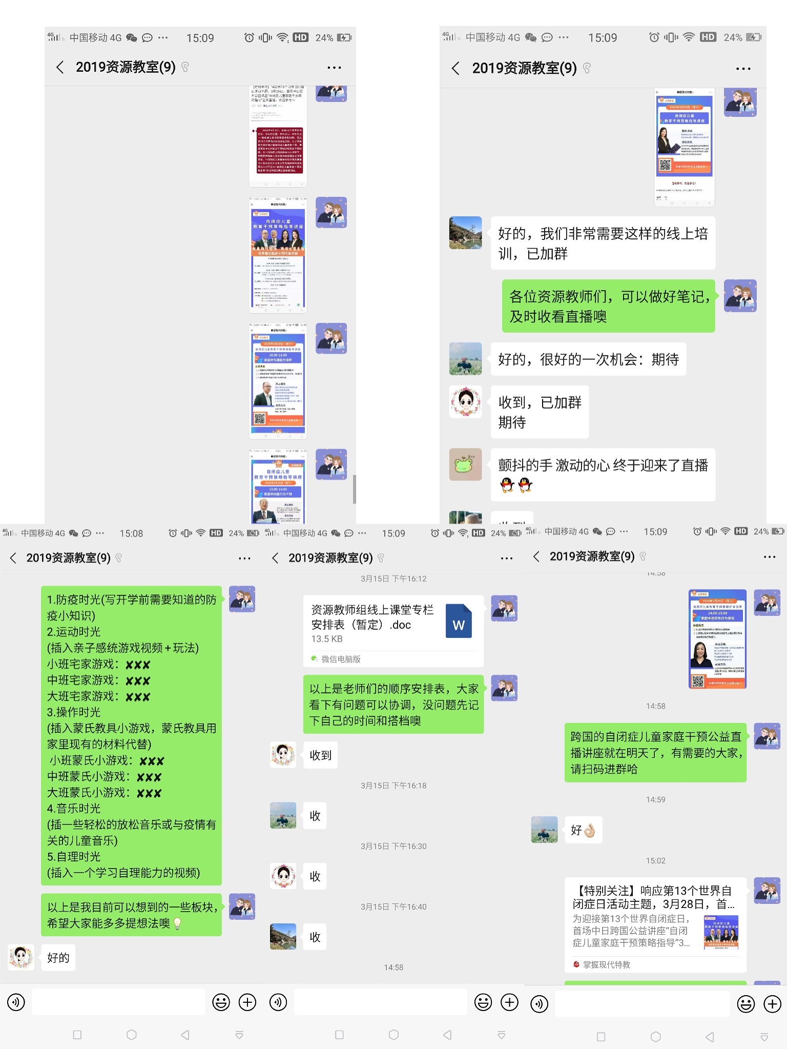 与此同时,高楼镇中心幼儿园资源团队还组织观看了微电影《星星的孩子》、《老师的心》等,通过电影的形式给刚刚迈入融合教育之门的老师们带来了希望和期待。每位老师观影结束后,纷纷表达自己的感受,从她们的发言中能感受到每位老师对孩子满满的爱,和对特殊儿童的尊重与接纳。