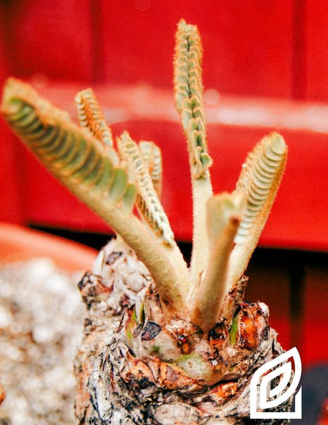 常绿木本植物。茎干高15〜30cm,单干,圆柱形,被有深褐色叶痕。根系粗壮,肉质。叶为偶数羽状复叶,小叶宽阔。雌雄异株,雄花序松球状,雌花序掌状。