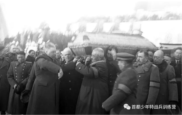 1952年1月26日,蒙古人民党创始人之一、外蒙古独立的领导人,有着蒙古国国父之称的乔巴山因患肾癌在莫斯科逝世,享年57岁。1月29日他的灵柩运回蒙古。毛泽东主席说:“乔巴山元帅是蒙古人民伟大的领袖,蒙古人民革命杰出的领导者与组织者。乔巴山元帅在反对日本帝国主义战争中给予中国人民的援助,将在中国人民的心中永垂不朽。”中国政府派出了以聂荣臻和乌兰夫为团长的中国政府代表团到蒙古乌兰巴托出席蒙古部长会议主席乔巴山的葬礼,在葬礼上聂荣臻(右一)还亲自为其抬棺送葬。