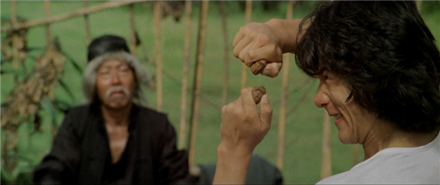 直到成龙已经学会了“挨打”,才开始进入主题,教醉拳。