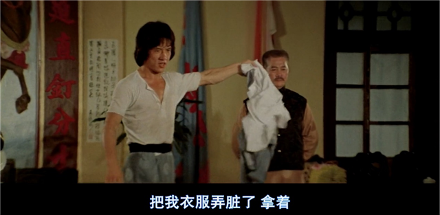 成龙打得酣畅淋漓得意忘形,居然随手让旁边的人帮他拿衣服,结果转头一看,是一脸怒容的父亲……