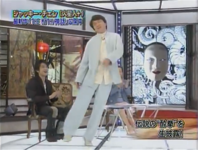 成龙与日本缘分颇深:成龙多部电影在日本大卖,具有极高的知名度。而成龙本人也多次去日本宣传电影,甚至自学日语上日本综艺节目演示醉拳。图中坐着的日本主持人就是日本当红偶像泷泽秀明。