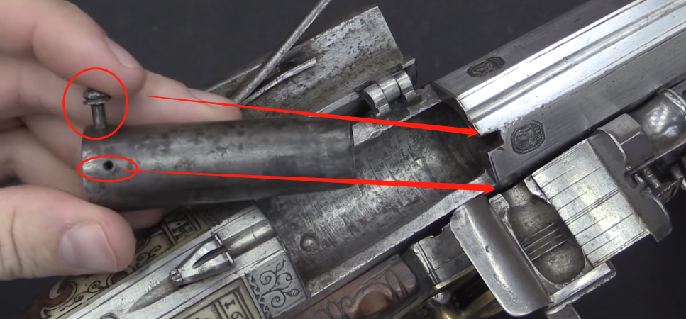 这个没错...但贵族大爷会只有这么一个铁套子吗?其实咱们换个想法,是不是觉得这个设计非常像弗朗机炮啊?没错,当年的后膛燧发枪就是佛朗机炮的小型尊贵奢华版。