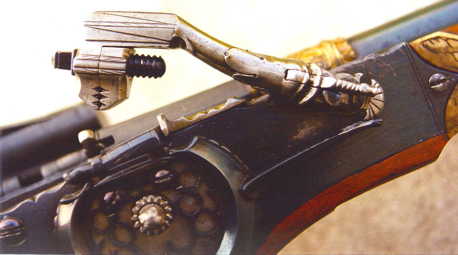 然后欧洲的贵族老爷们发现了个装X的全新领域:簧轮+后膛,这两结构在当年都非常难加工,因此极为昂贵。如果带上这么一把枪出去撩妹的话,境界不知道比那些揣着怀表的村炮高到哪里去了。