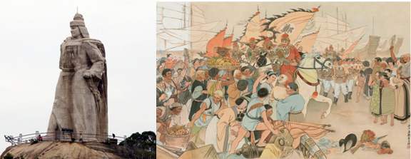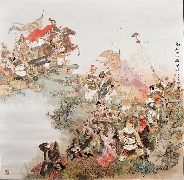 1661年(清朝顺治十八年,南明永历十五年)三月,郑成功亲率2.5万名兵将,分乘百艘战船,从金门出发。