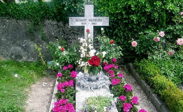 时间并没有掩盖人们对赫本的思念,每年依旧有从世界各地寻觅而来的粉丝,他们在和平之邸附近徘徊,回想着曾经出现在这里的优雅身影。而赫本的墓碑,没有相框也没有雕塑,却一直被鲜花簇拥。