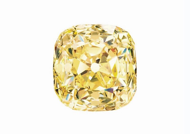 1877年,这颗黄钻开采于南非的金伯利钻石矿场,原石重达287.42克拉,后来由蒂芙尼的创始人查尔斯·路易斯·蒂芙尼先生所购得。为了展现出这颗钻石最耀眼的光芒,蒂芙尼首席宝石学家乔治·弗雷德里克·坤斯博士不惜牺牲掉一半以上的克拉重量,将其精心切割成128.52克拉的枕形钻石,并且拥有82个切面。