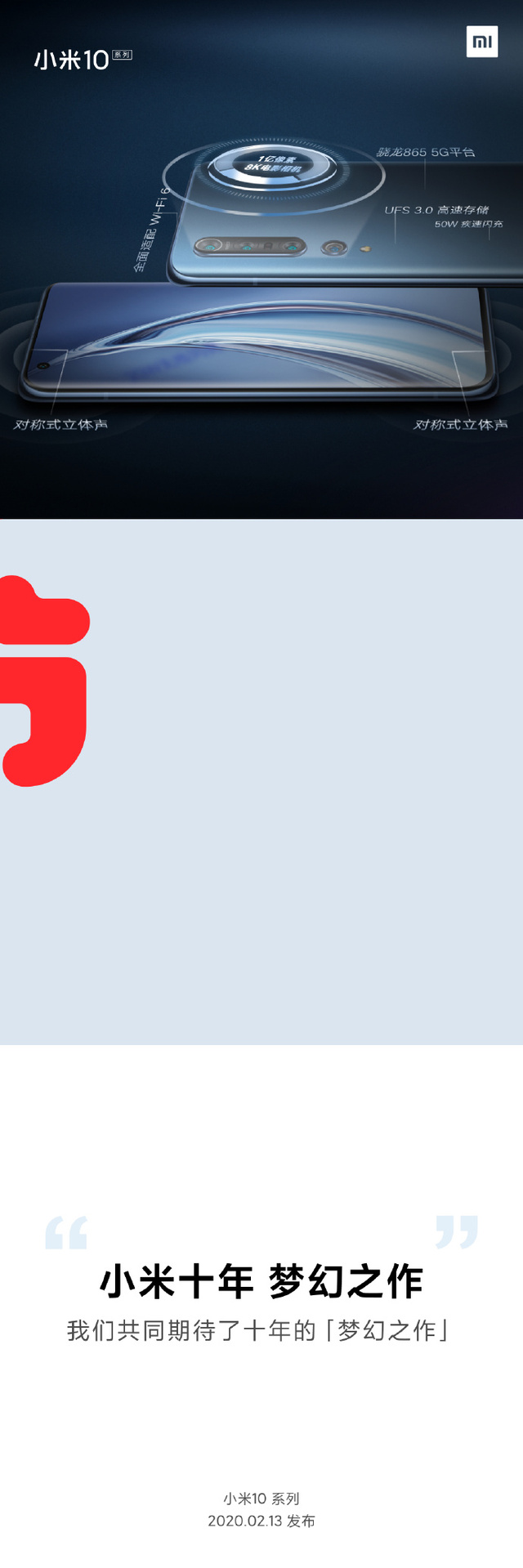 小米10:2020年2月13日发布,“小米十年 梦幻之作。我们共同期待了十年的「梦幻之作」。”
