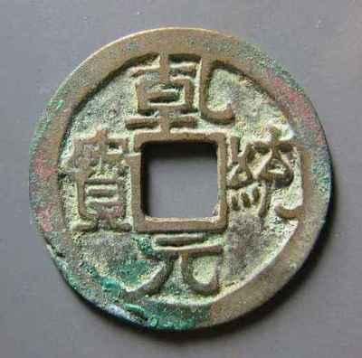 天祚帝天庆年(1111-1120年),铸“天庆元宝”,有小平、折十型。 西夏,是我国境内的少数民族政权。西夏钱有铜钱和铁钱两种,铜钱流通于西夏故地的西部,铁钱流通于东部地区。