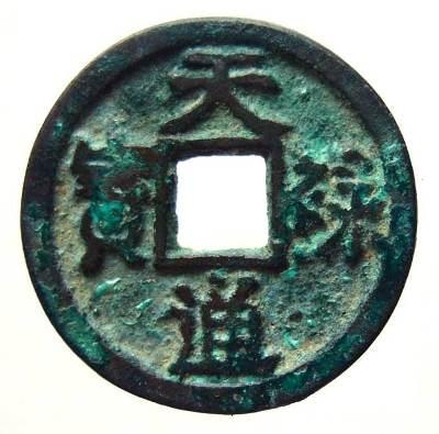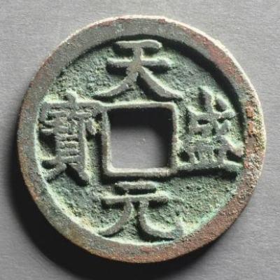 太宗天显年间(926-938年),铸“天显通宝”,钱文隶书旋读,共发现三、四枚,其中两枚流入了日本。