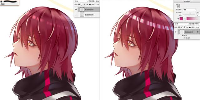 还可以单独用原本的正常图层,加上外发光的图层效果(下图右)
