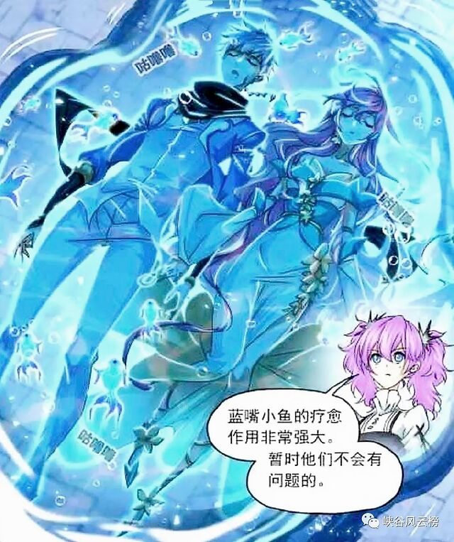 与此同时,宁荣荣和奥斯卡也因魂力散尽而身体脱力,海神七子用蓝嘴小鱼为她们治愈。