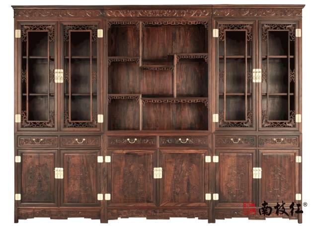 三组合四季花书柜 大红酸枝