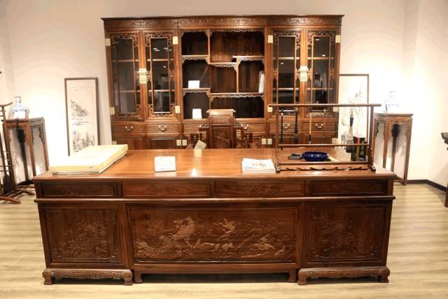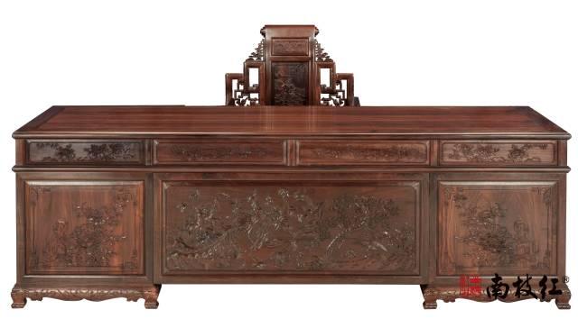 百鸟朝凤办公桌 大红酸枝