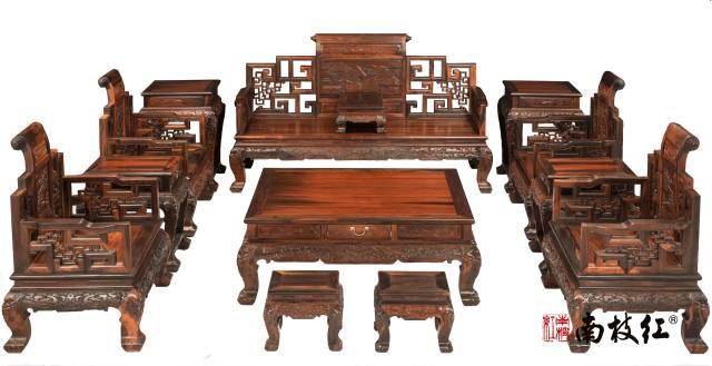 加大山水卷书沙发13件套 大红酸枝