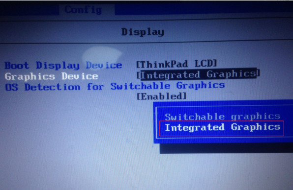 4,这里我们会看到有两个选项,“Switchable graphics”是独显和集显同时开启,我们选择“Integrated Graphics”按回车键。