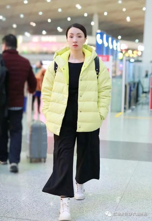 陶虹上身穿羽绒服,呈现出蓬松丰盈的视感,温暖又舒适,陶虹选择了亮丽的黄色是整套LOOK的一个亮点,虽然不太好搭配,但是绝对可以把气色提升好几个度,同时还兼具减龄效果。陶虹敞开前襟露出黑色的内搭,色调沉稳大气,休闲又随性,下身穿黑色阔腿裤,与内搭色调相呼应,线条简洁流畅,尽显洒脱之风,脚穿舒适小白鞋,背着黑色的双肩背包,搭配着素雅的妆容,迈着轻盈的步伐洒脱自信。
