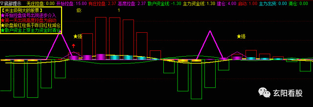 副图指标上对于关注级别做了一个颜色的分类,对于不同的关注度所使用颜色不一样,位置不一样,形状不一样,更加清楚明了:对于紫色,红色提示(图形朝上)可以介入,对于黄色,绿色(图形朝下)应进行减仓。