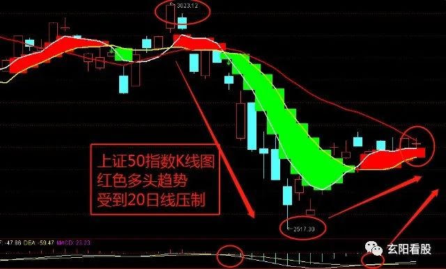 二、上证50指数向上冲击20日线: