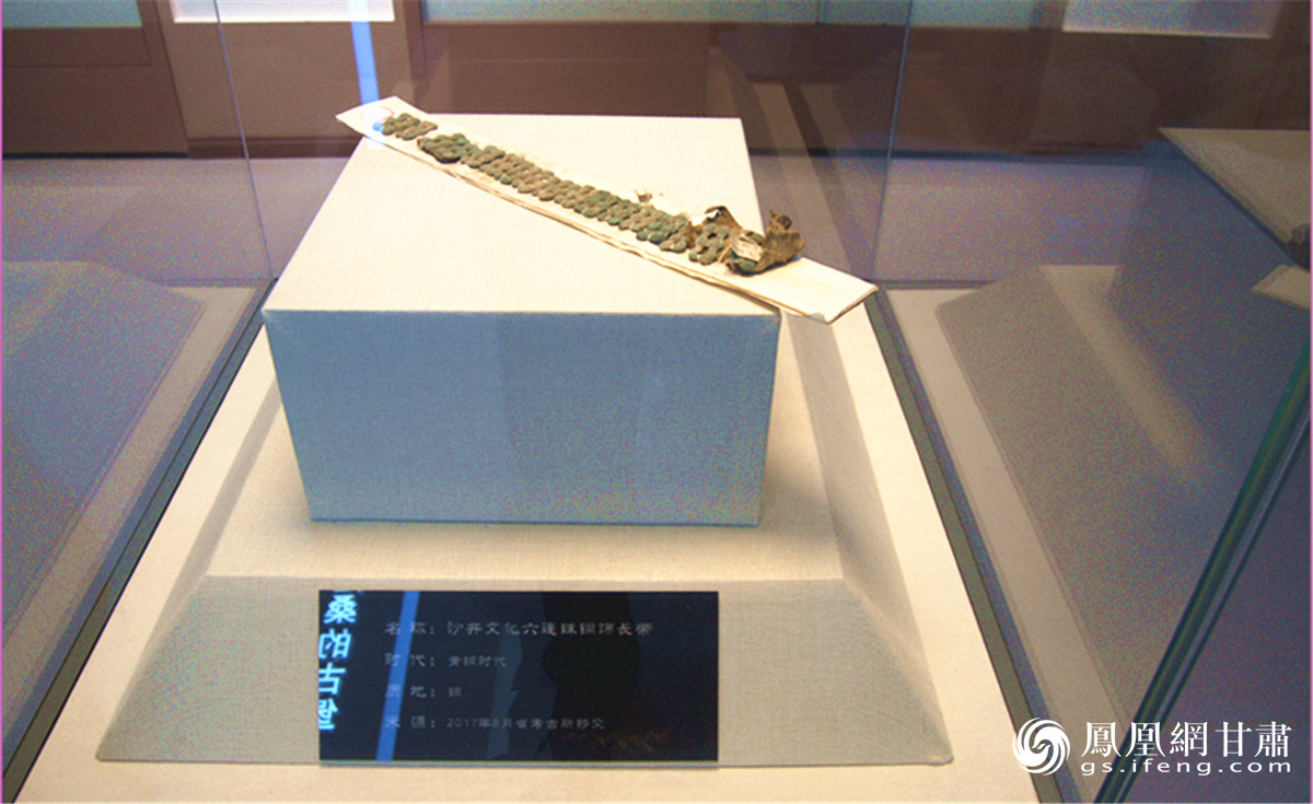 “沙井文化的青铜器以装饰品居多,独立展柜内展出的就是当年出土的一件青铜时代沙井文化六连珠青铜饰长带。”马志雄介绍,这是一件女性腰部的装饰品,束于腰际,更显衣着的华丽和主人的和华贵。