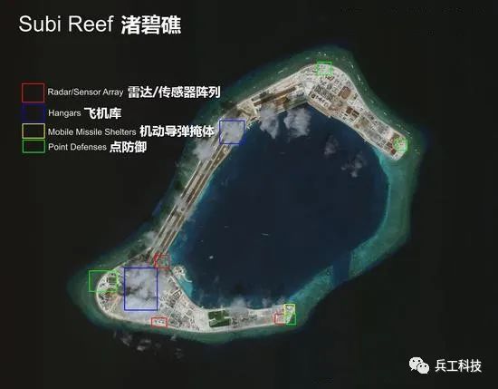 图注:美国情报机构发布的渚碧礁上的军事工事建筑的卫星图片