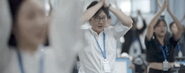 上班时,他沐浴在狼性企业文化中,做着加油鼓劲的沙雕早操。
