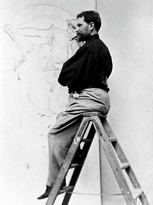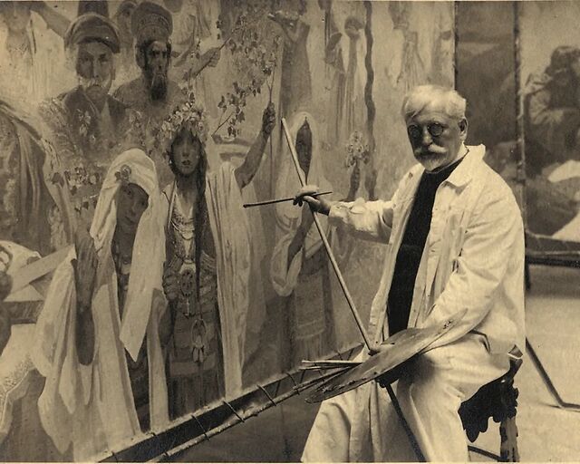 慕夏正在绘制《斯拉夫史诗 》的第六幅作品