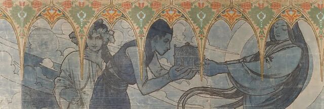 然而,他暂时告别了这类创作,因为他获得了一个独一无二的机会——为1900年巴黎世博会波斯尼亚和黑塞哥维那馆设计墙面装饰。