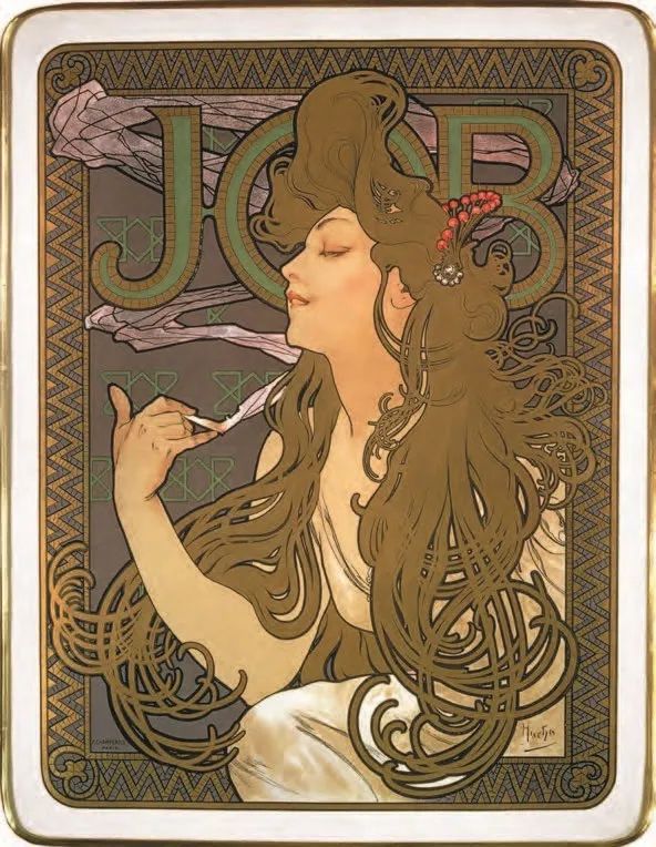例如,它出现在慕夏于1897年设计的JOB卷烟纸上,这款商业海报一问世就被人们视为杰作。