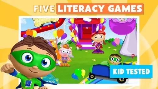 来自于注明的儿童早教项目PBS Kids。通过符合CCSS(美国小学通用教纲)的设计,从字母发音到单词,Super Why Phonics Fair会带领孩子通过嘉年华游戏学习所有需要知道的拼读方法。而且孩子还可以选择使用大小写来玩所有的游戏,每完成一个游戏都可以获得贴纸奖励,当获得足够多的贴纸后,就会获得选择不同背景装饰的权利,非常的吸引人。