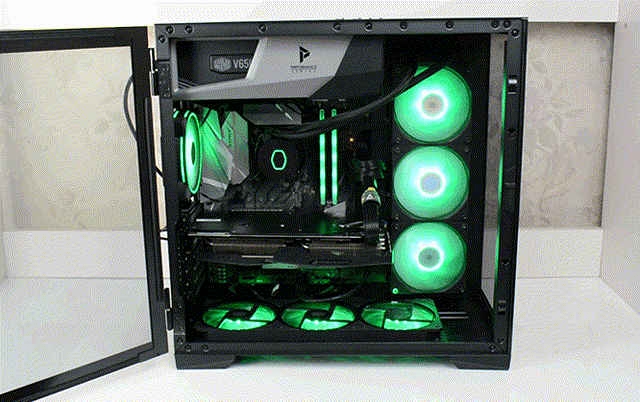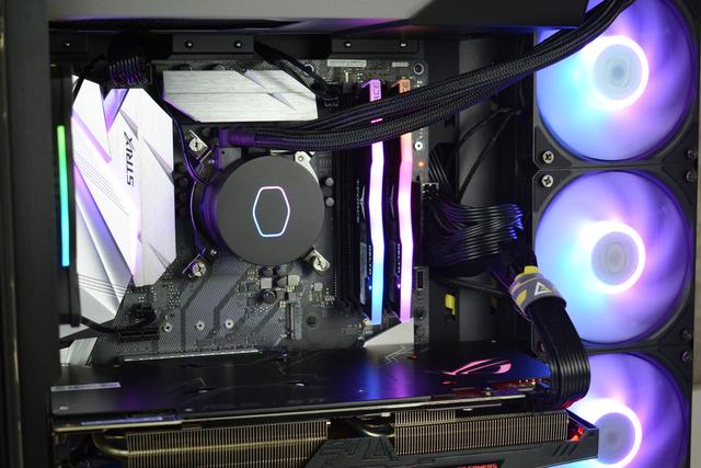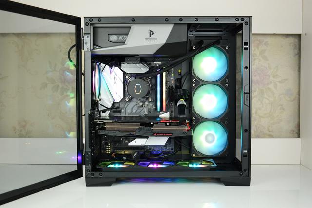怎么样,整机的效果还不错吧,装机用到的大多数硬件都带有一定的RGB特效,再搭配冰钻机箱的双侧透设计,所以可以更好的展示光污染效果,下面我们来对CPU进行散热测试,看看散热器的散热性如何。