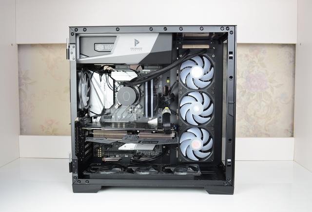装机是个耐力活,难度不大,但比较费时间。本次装机用的是我的主力测试平台:i5 9600KF+Z370主板+华硕RX598显卡+十铨16G(8G*2)内存条,机箱就是近期入手的安钛克冰钻P120,所以搭配冰神360一体水冷还是很合适的,其它硬件就不废话了,看过我装机的朋友都见过了,直接看装机后的图吧: