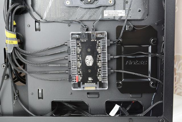 安装后,散热器自带的集线器真是太强了,不但可以给水冷风扇供电,还可以给机箱风扇供电,有了这个集线器,对机箱理线也很好,也能轻松解决主板接口不够的问题。不过机箱走背线是个技术活,有时间就慢慢折腾,没时间就直接盖上机箱盖板,都没啥问题。