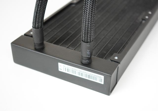 水冷的水管接头必须要处理得结实,否则漏液损失就大了,如上图所示,这款散热器的接头处理得还不错,除了水管外有蛇皮网包裹,水管接头处还进行了包胶加固处理。
