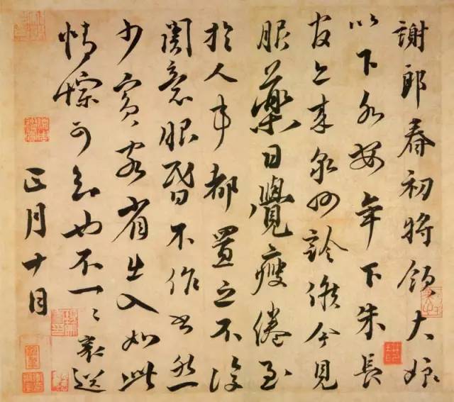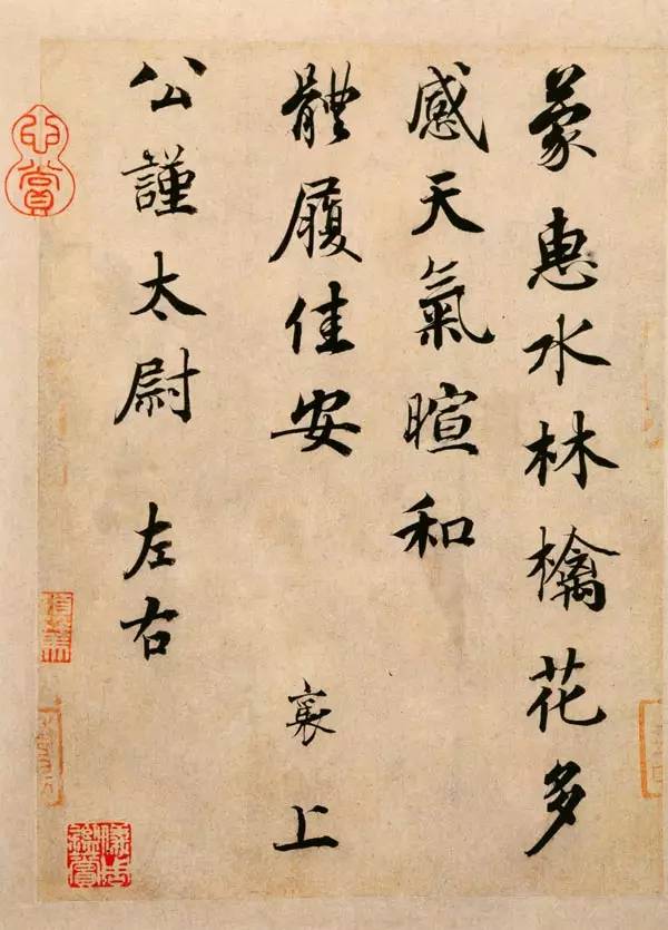 释文:蒙惠水林檎花,多感。天气暄和,体履佳安。襄上,公谨太尉左右。