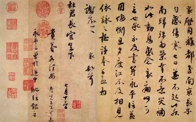 此帖又名“致杜君长官尺牘”,乃蔡襄即将渡长江“南归”途中所书,追述离都(开封)行至南京(今商丘)而痛失长子。友人来信慰问,襄作此书答谢。书法丰腴厚重处似顏真卿,兼有王羲之行草之俊秀。选自《宋四家墨宝》册。