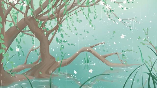近窗几枝小翠柏,在雨中越青翠得爱人,可是不知伊心中有什么悲哀,无几根睫毛一样的小枝头含着无数颗溜圆圆、要坠不坠的泪珠儿,一见着轻轻拍伊肩头的风姨,便止不住泪珠儿纷纷地落下。枯树上几只Sentiment 的小鸟,正尖尖脆脆地唱“松山春雨”的歌儿,忽看见小柏儿这等伤悲,歌兴顿阑,又不好把什么普通的应酬话来慰藉伊,便一刹儿飞到别处唱去了。只有那打在瓦上、板上、地上的雨声,轻轻重重,远远近近地送到我耳鼓中来……